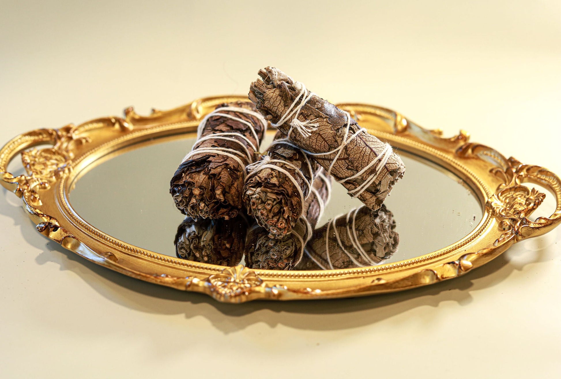 White Sage is used to clear space and energies. It is also antimicrobial and antibacterial. Additionally, Yerba Santa has been associated with increased clarity and intensifying spiritual energies.