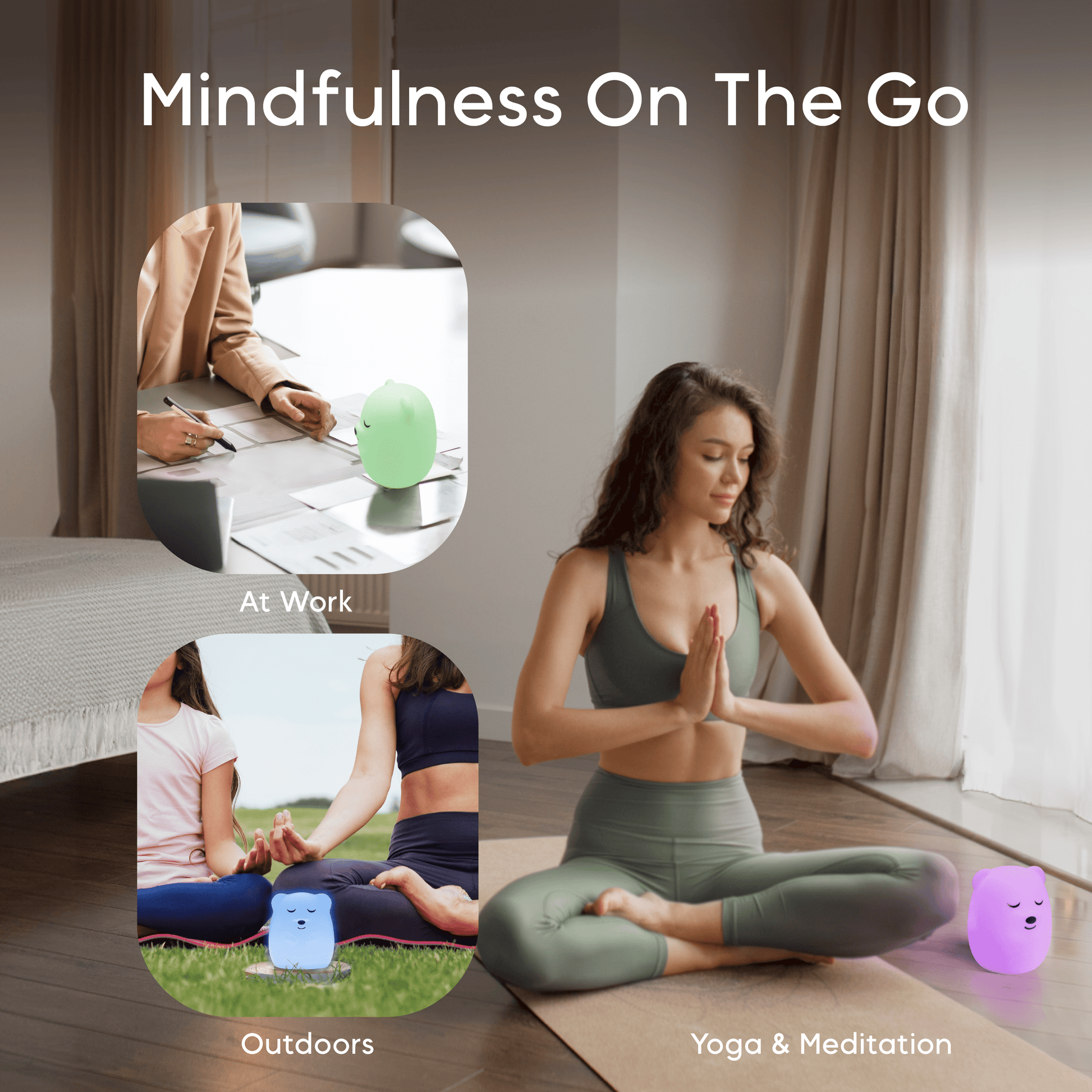- Easy to Use - Simplify your relaxation journey with our one-button operation. Easily switch between different breathing exercises with a single press, or tap to change the ambient light color to match your mood. For added convenience, the device features an auto-shutdown function, giving you peace of mind as you focus on your breathing and well-being, making it a must-have meditation accessories