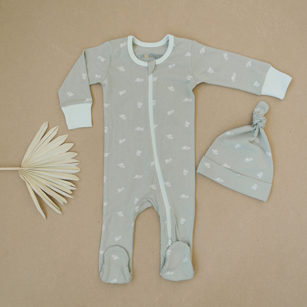 GOTS Certified Organic Cotton Zippy Footed - Freshwater Snail