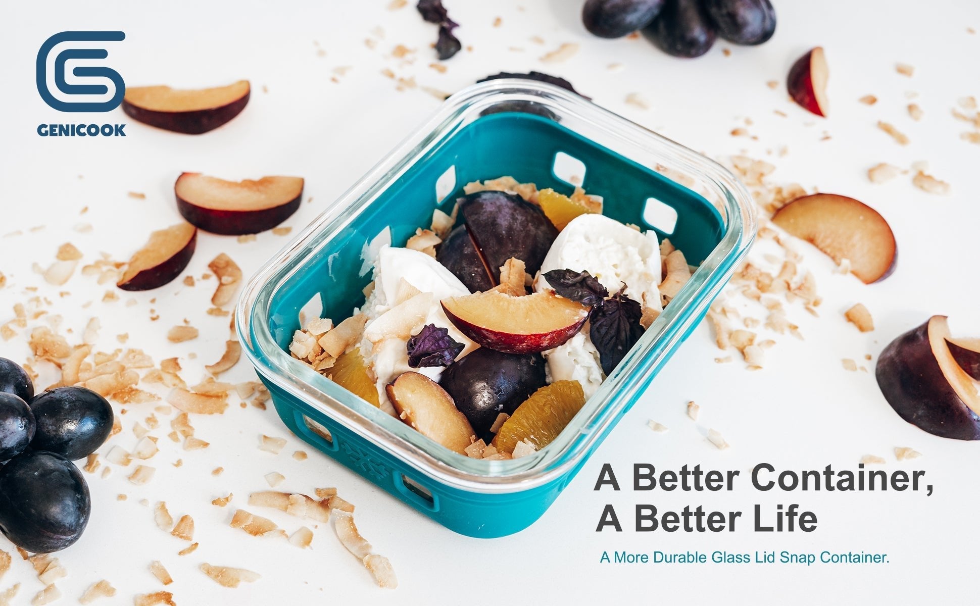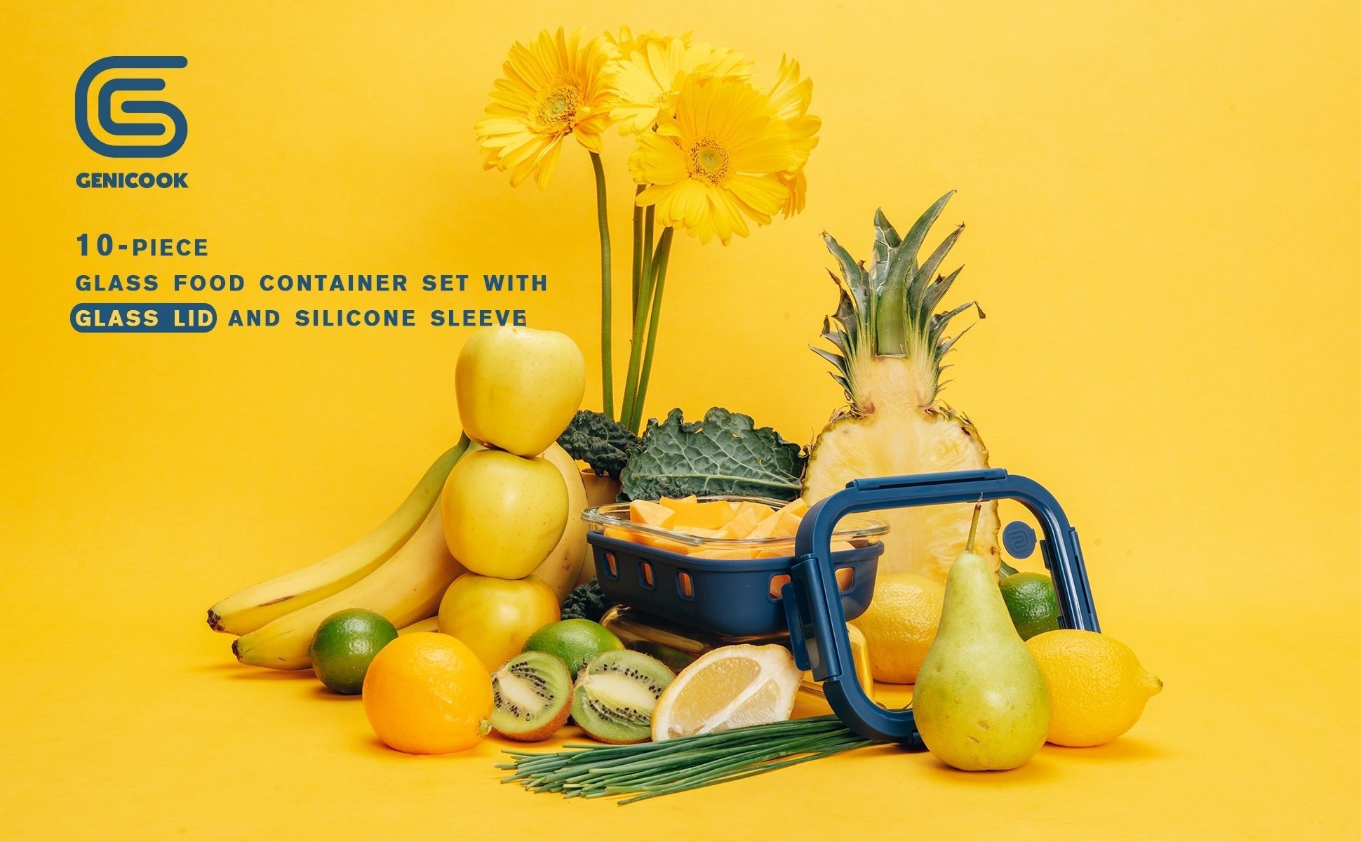 Embrace a blend of sophistication and practicality with Genicook's 5-Piece Glass Container Set, your go-to solution for seamless food prep and storage. Each container is crafted from robust borosilicate glass and features a secure glass lid with a protective silicone sleeve. Perfect for meal prep or storing leftovers in an organized kitchen.