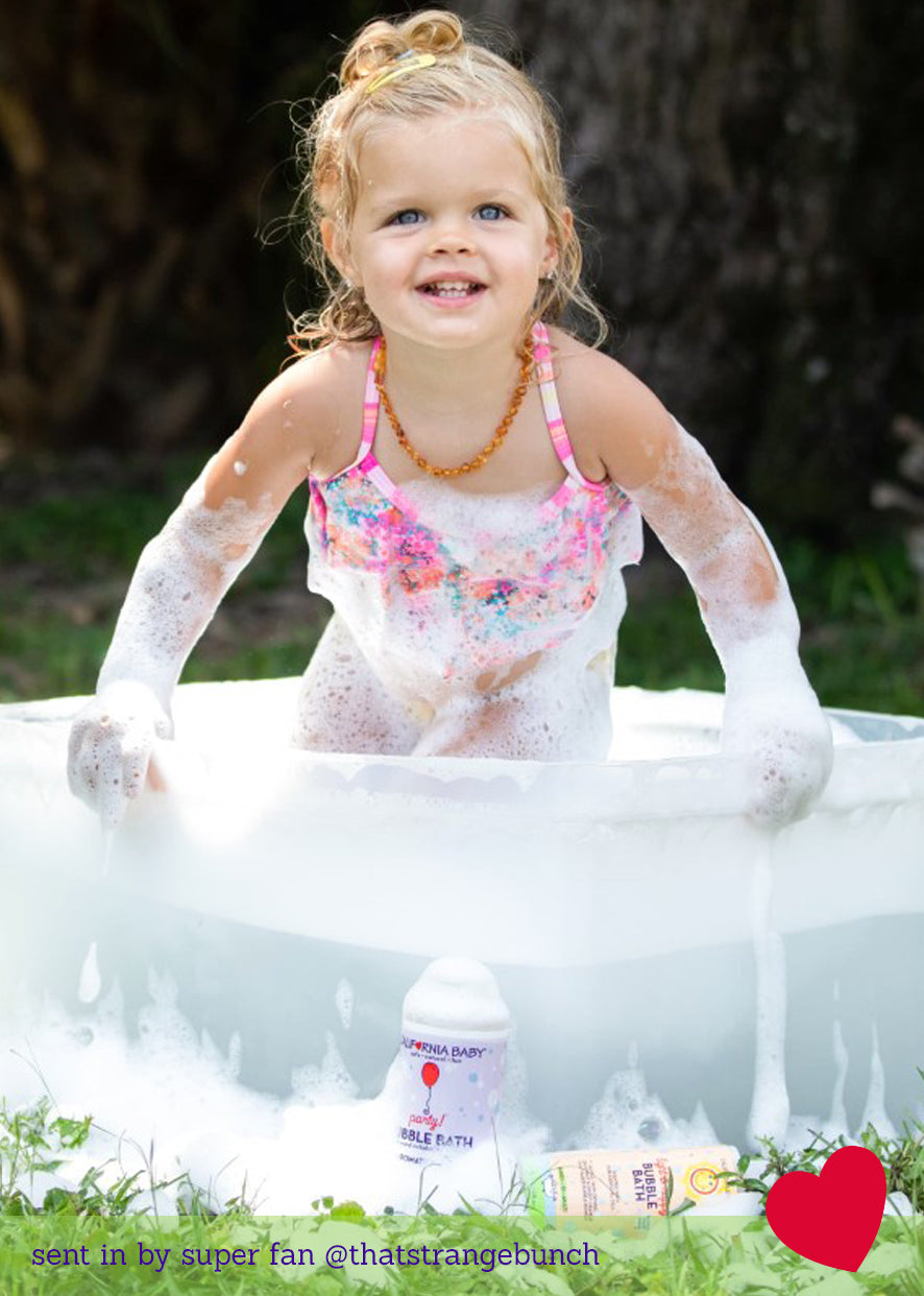 Unlike the harsh chemicals found in many common bubble baths,ourgentle formulas are made with plant-based bubbling ingredients that still create a mountain of bubbles without drying or irritating sensitive skinor eczema. Meanwhile, certified organic aloe vera and calendula extract further soothe the skin. Our irresistible scents are made from 100% pure essential oils and zero of the unknown and unlisted chemicals found in synthetic fragrances. Bubble wand included!