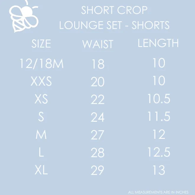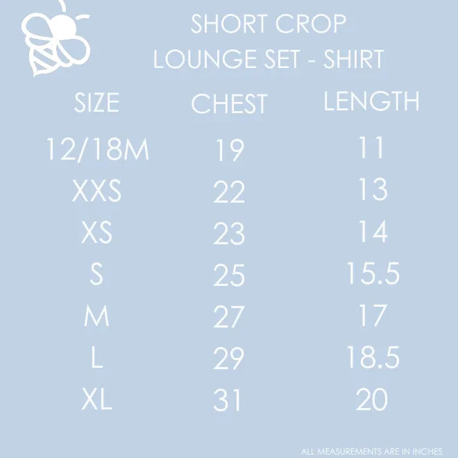 Make lounging extra fun for your kids with our Short Lounge Crop Set in the playful Crawfish pattern. This comfy set is perfect for relaxing or playing around in, adding a touch of quirkiness to their wardrobe. So go ahead, let your kids lounge in style and comfort! * 95% Polyester 5% Spandex