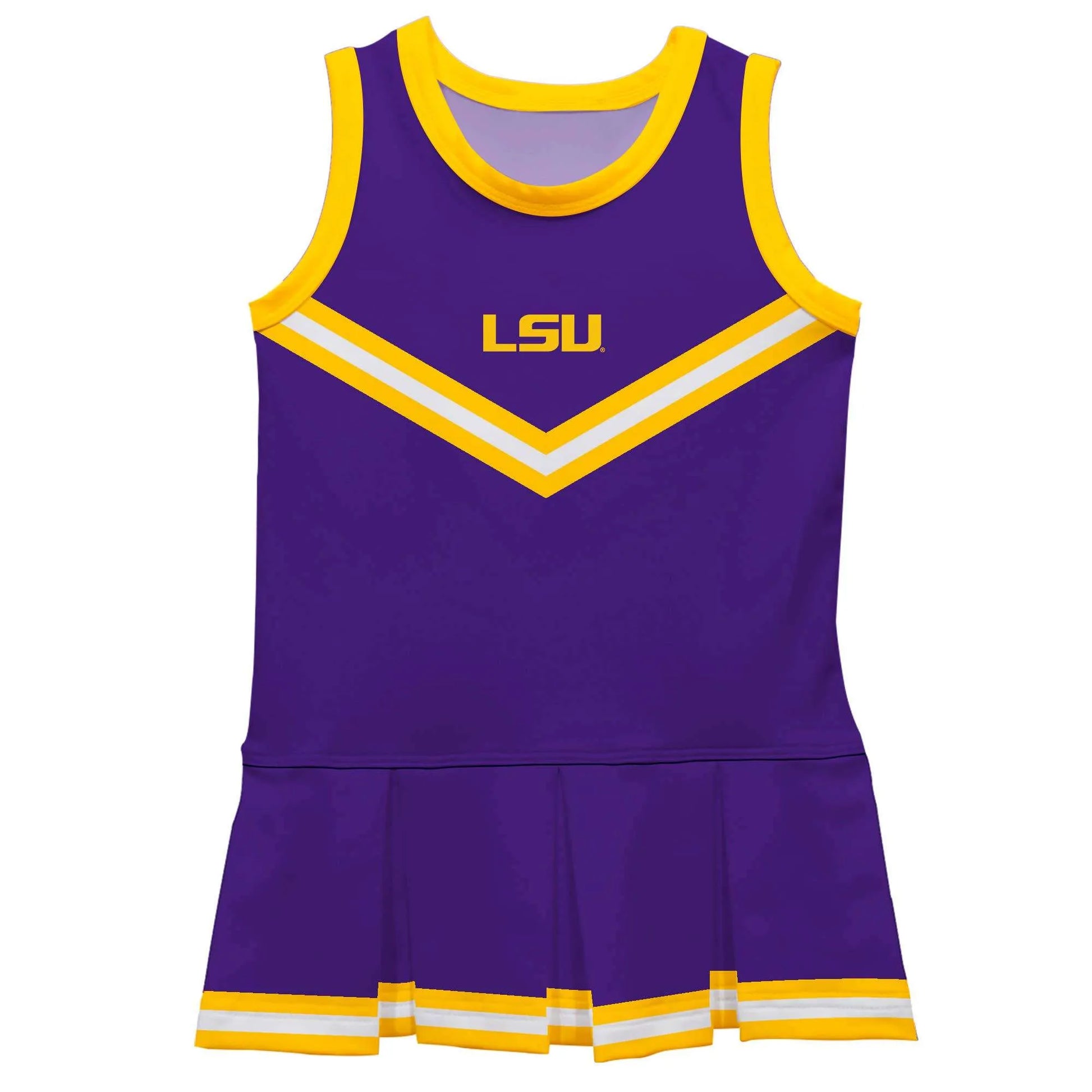 Let your daughter look cool in her new team spirit Cheer Cheerleader Dress. Let her play, enjoy the games, cheer loudly and proudly with her favorite team gear by Vive La Fete. Celebrate and cheer on game day with our classic design favorite team cheerleader dress with pleated skirt. Officially Licensed product sold by Vive La Fete. This awesome graphics, fun and game day cheerleader jumper features officially licensed your team colors and graphics will become an essential part of her wardrobe; perfect to cheer for her favorite team. This timeless design cheerleader dress made with top-quality long-lasting four-way stretch polyester spandex blend, sublimated moisture wicking soft knit fabric that holds its colors forever. Performance fabric that's comfy, strong, and breathable, UPF50.