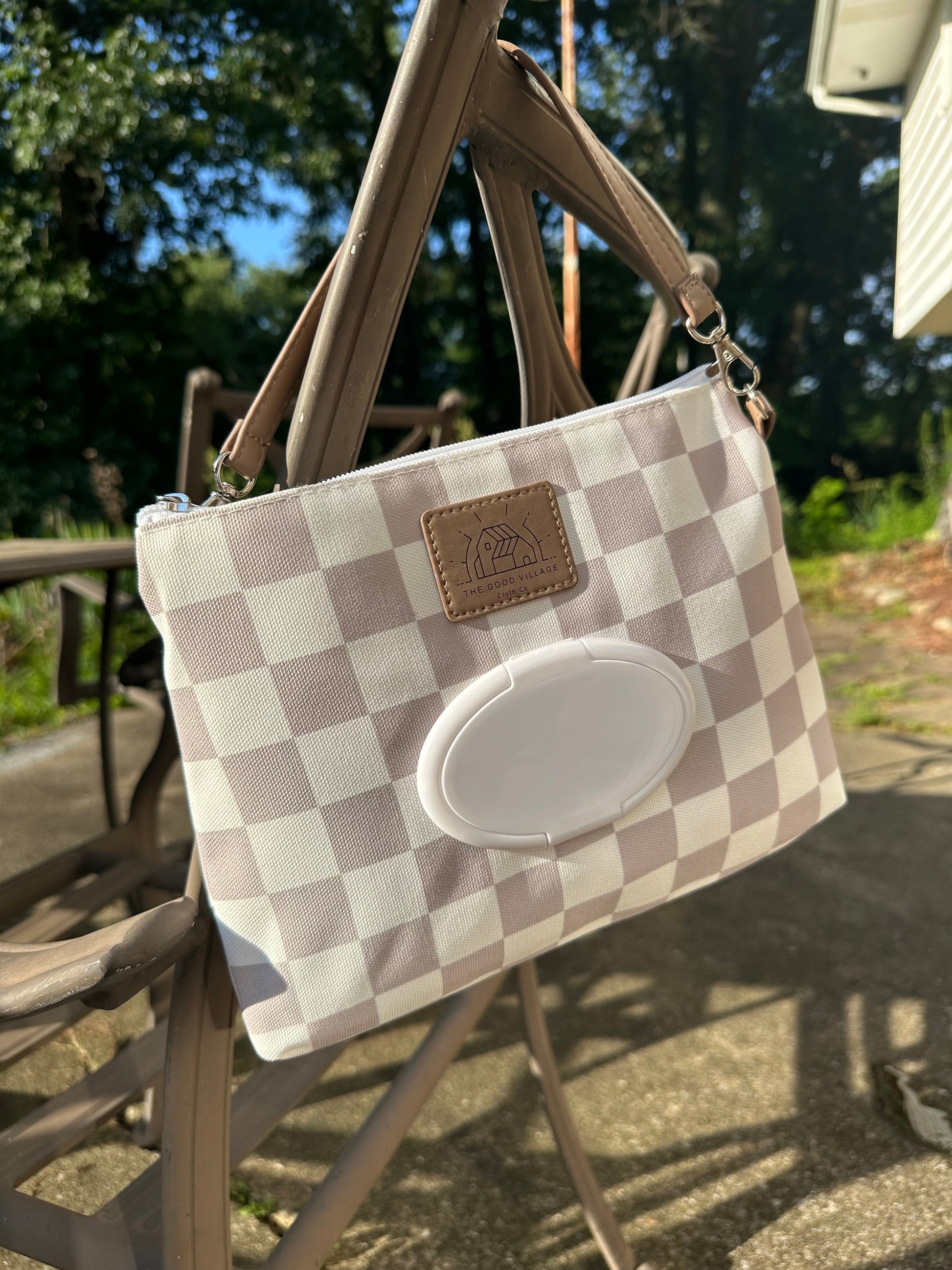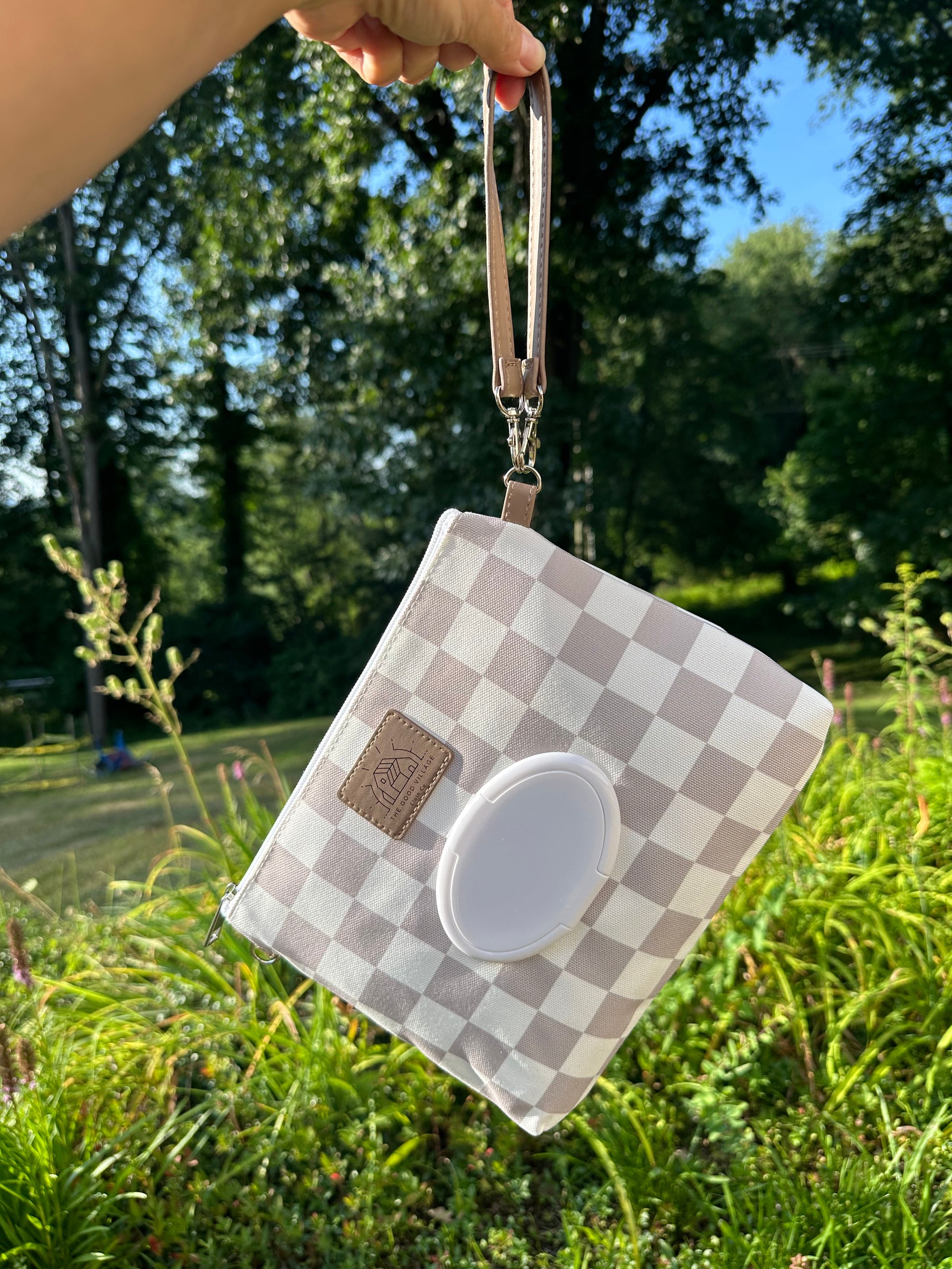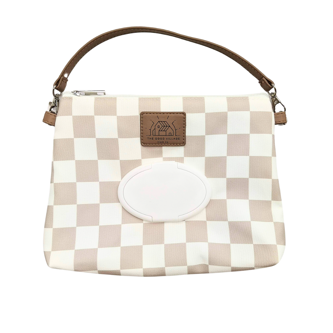 Take on the day with ease with our wipes clutch in Tan Check! Stay organized with 3 separate compartments including a waterproof enclosed wipes zone with outside access. The adjustable lanyard allows for convenient carrying while on-the-go. Perfect for busy parents, this clutch is a must-have baby essential.