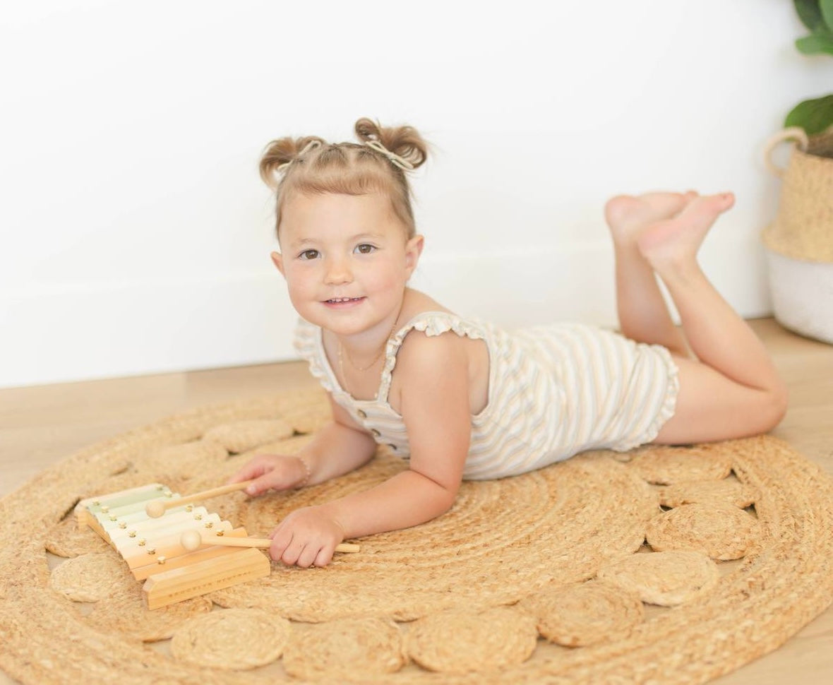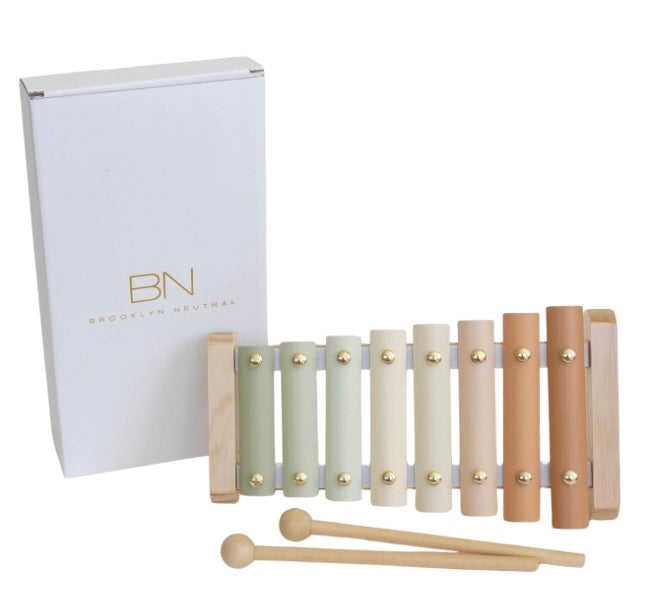 A modern twist on a classic toy. Our Brooklyn Neutral Xylophone is designed in soft, earthy tones that blend beautifully into any space while inspiring endless musical play. Made with durable wood and non-toxic, lead-free materials, it’s safe for little hands and minds. Each bar creates a gentle, clear sound, encouraging children to explore rhythm, melody, and creativity.